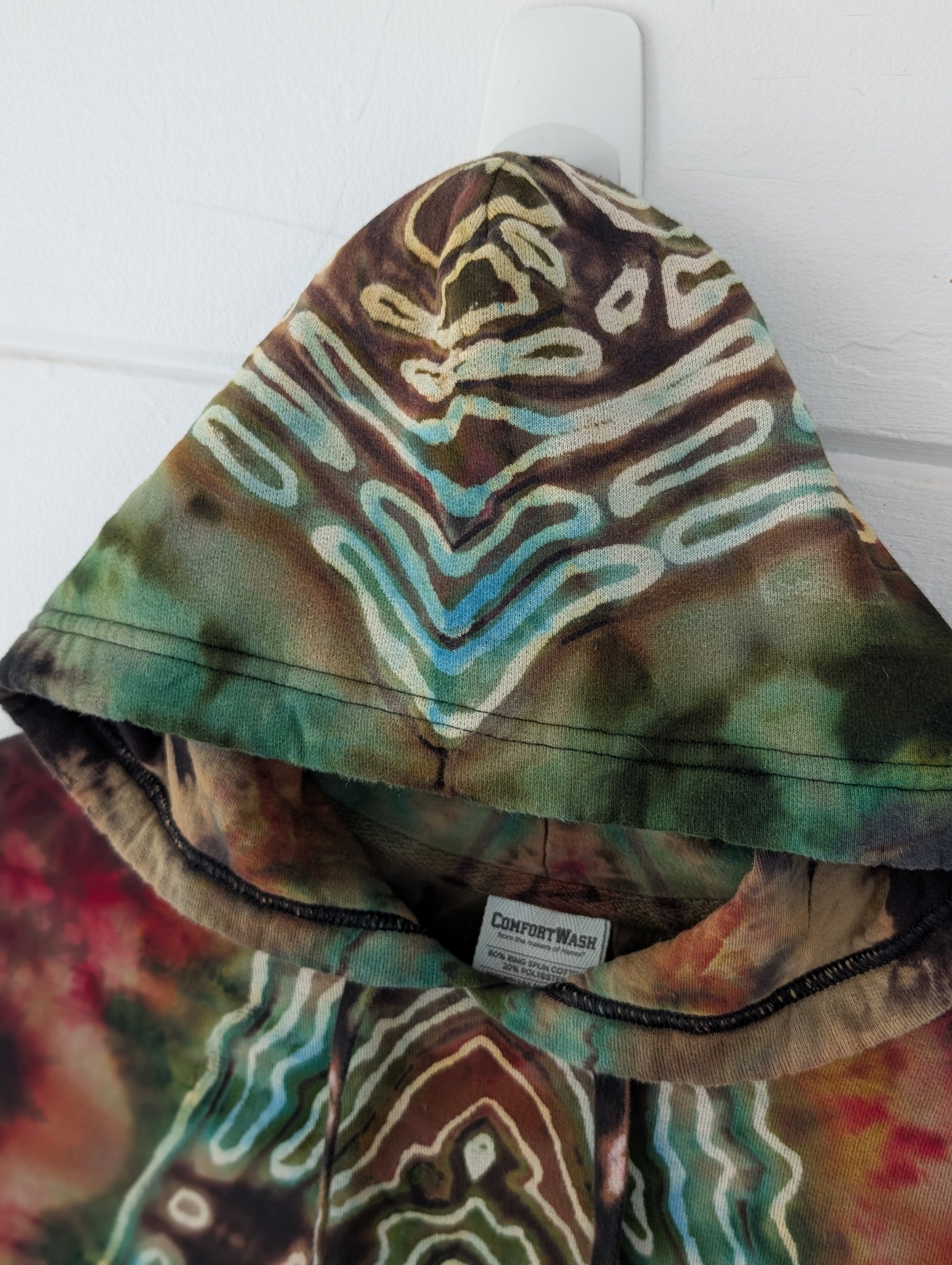 THIS WAS A LABOR OF LOVE! Hours & hours & hours of work went into this completely original and 1 of a kind design. This is the very first of its kind so if you choose to make this yours, you're getting your hands on a piece of history! This hoodie is 7.2 oz., 80/20 cotton poly blend. The inside lining is a super soft polyester fleece blend.