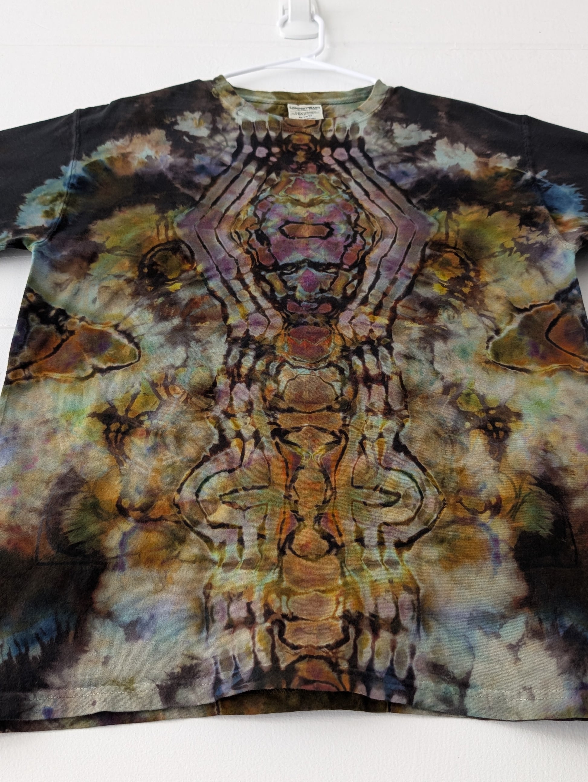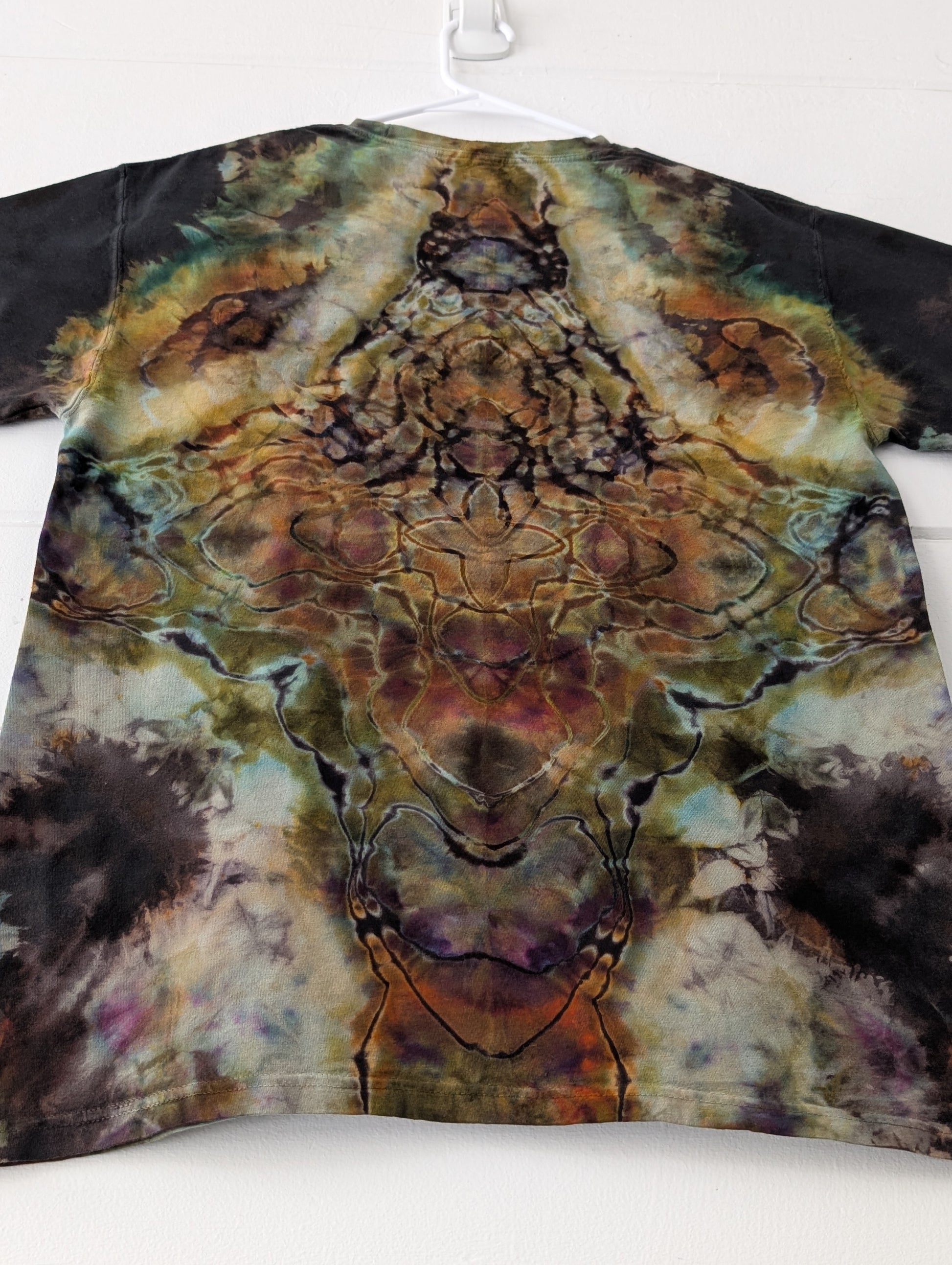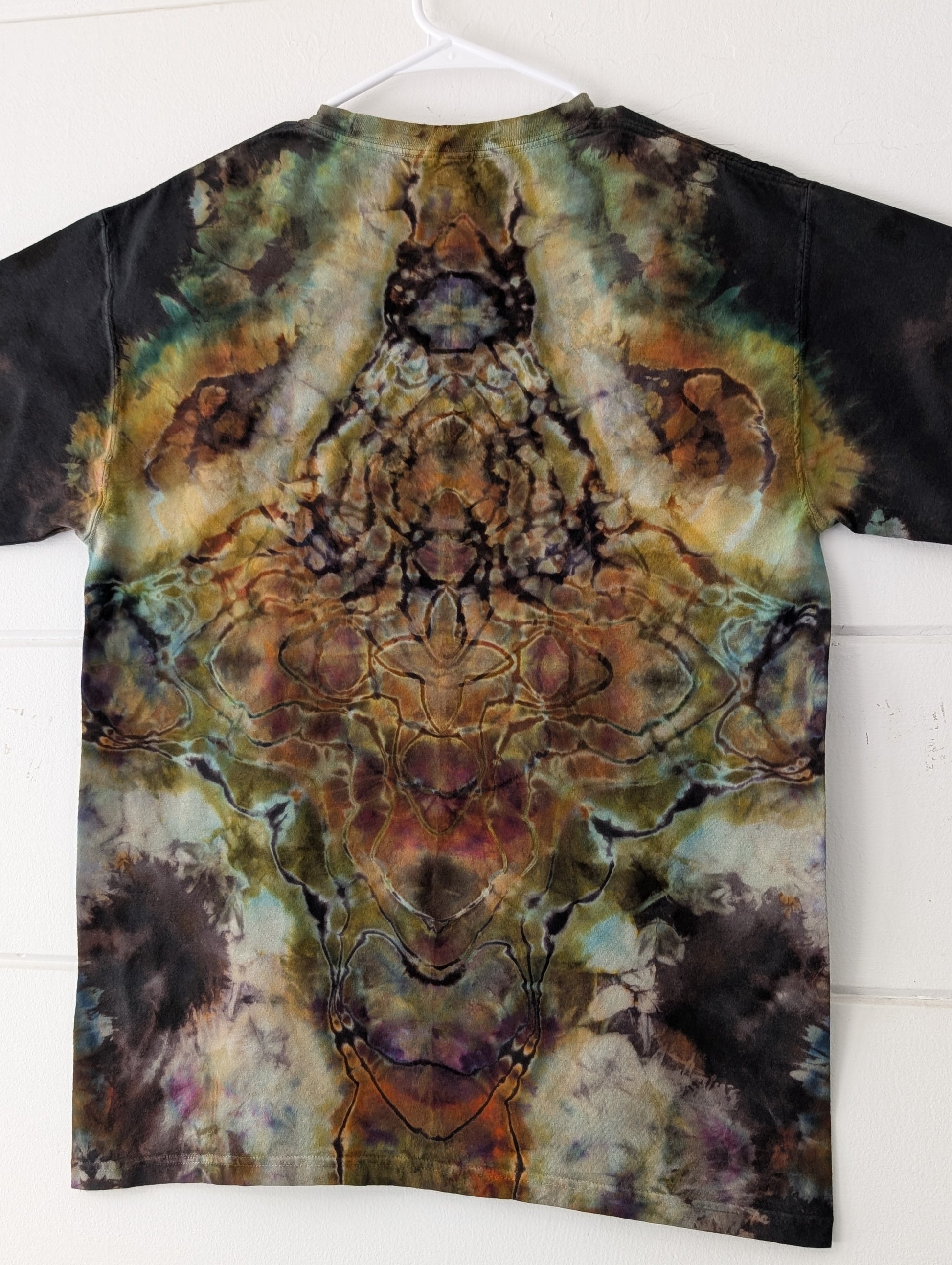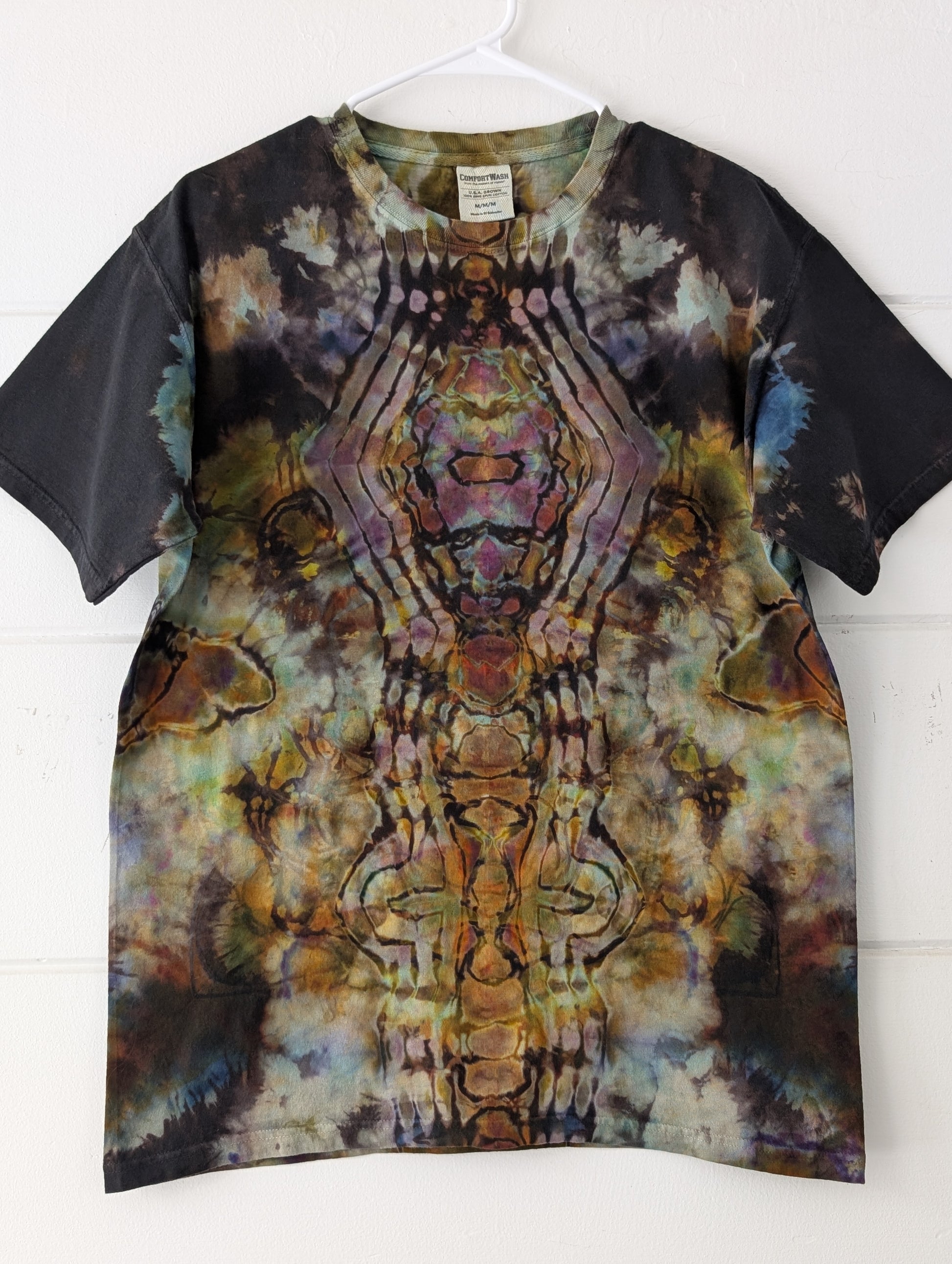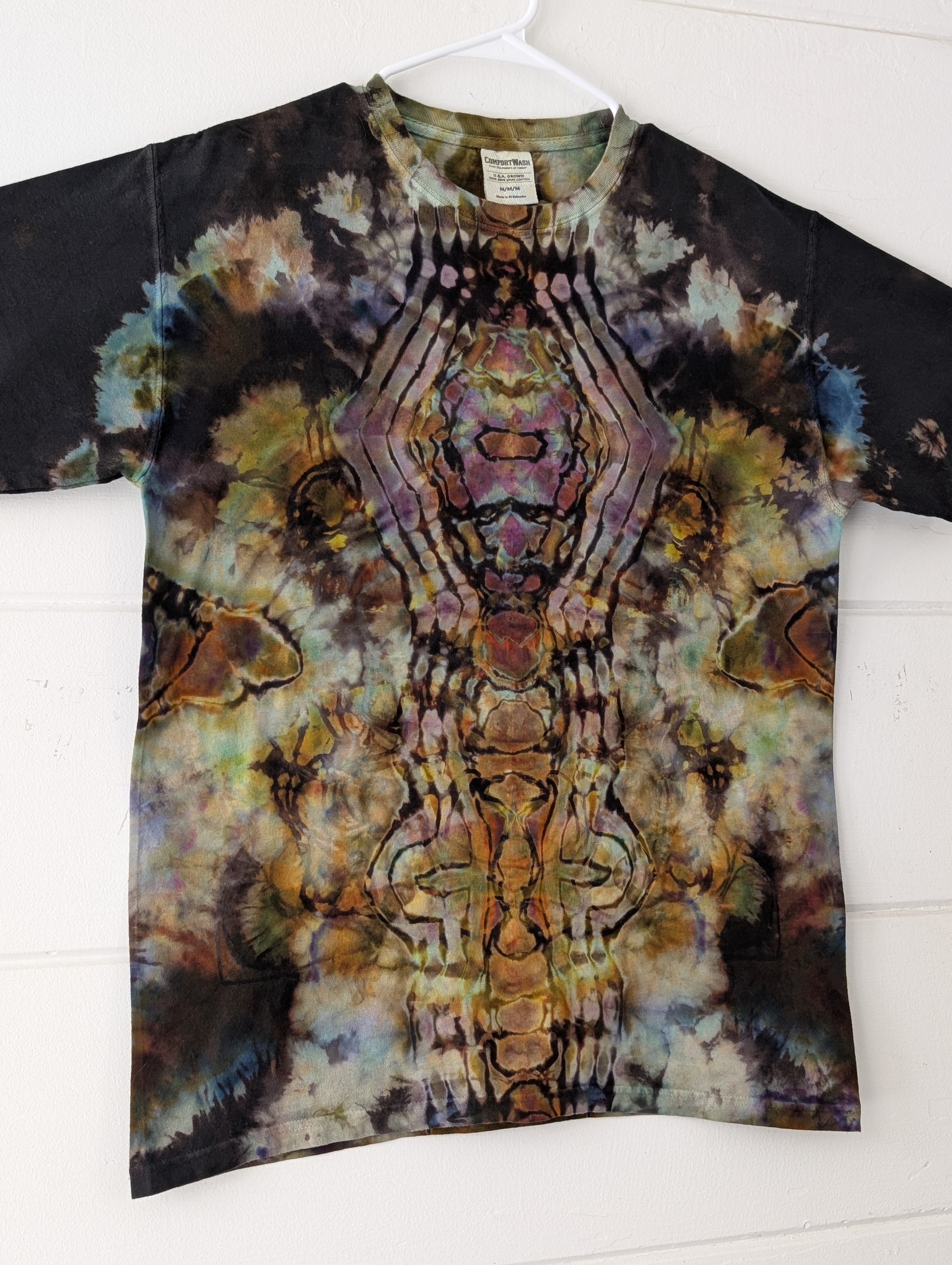 This shirt is 5.5 oz., American grown 100% ringspun cotton. It features a double exposure of prisms on the front and back. Made with love!