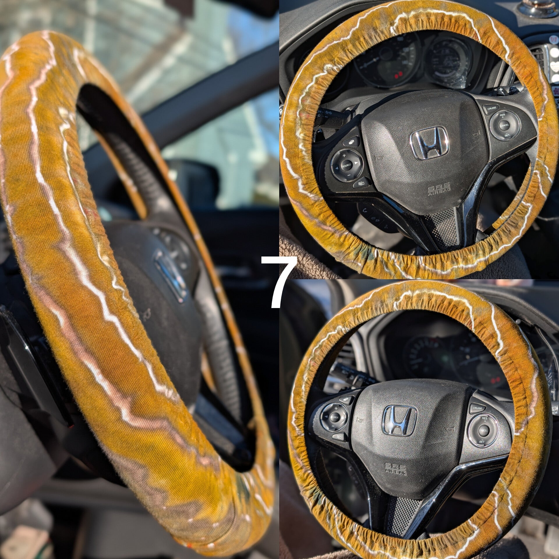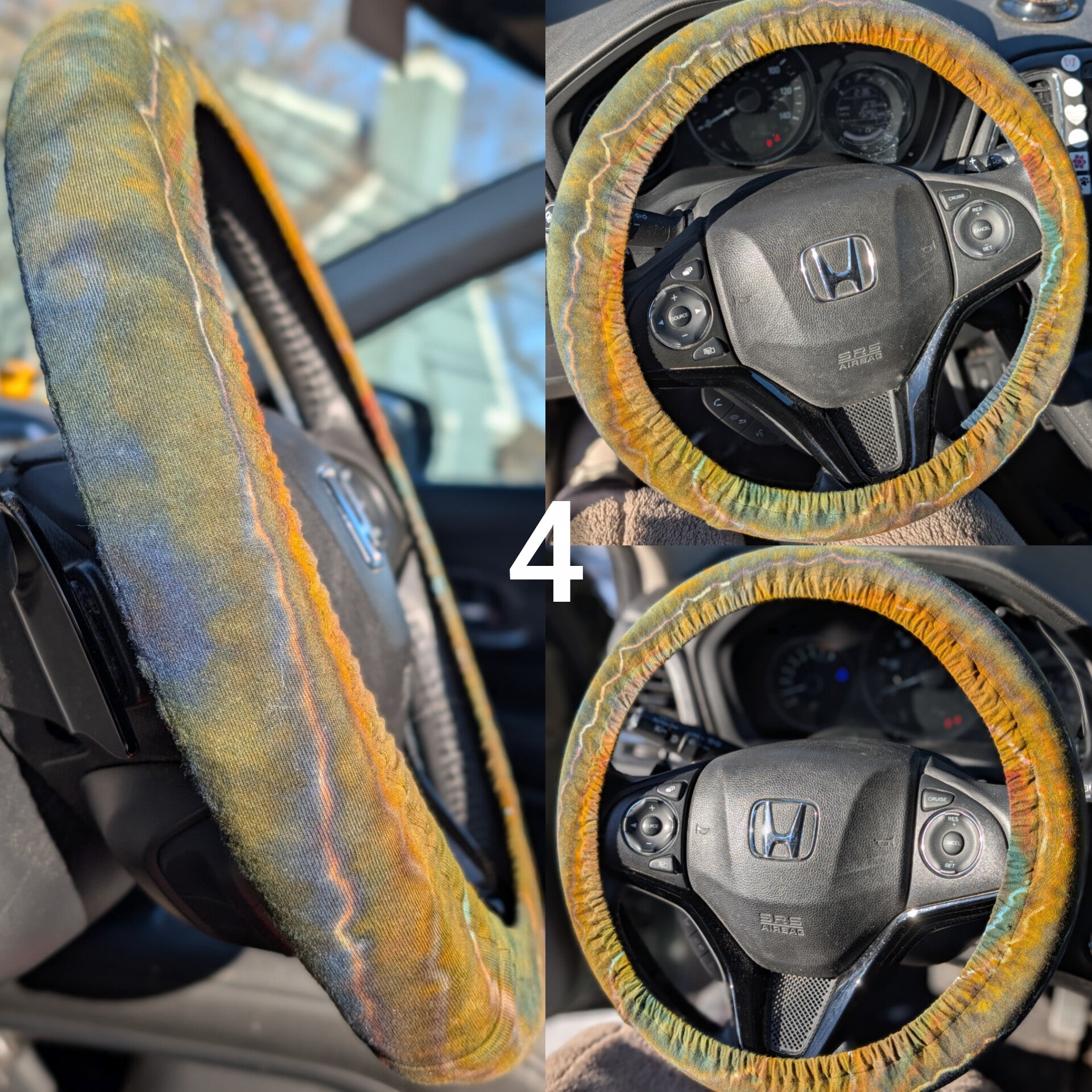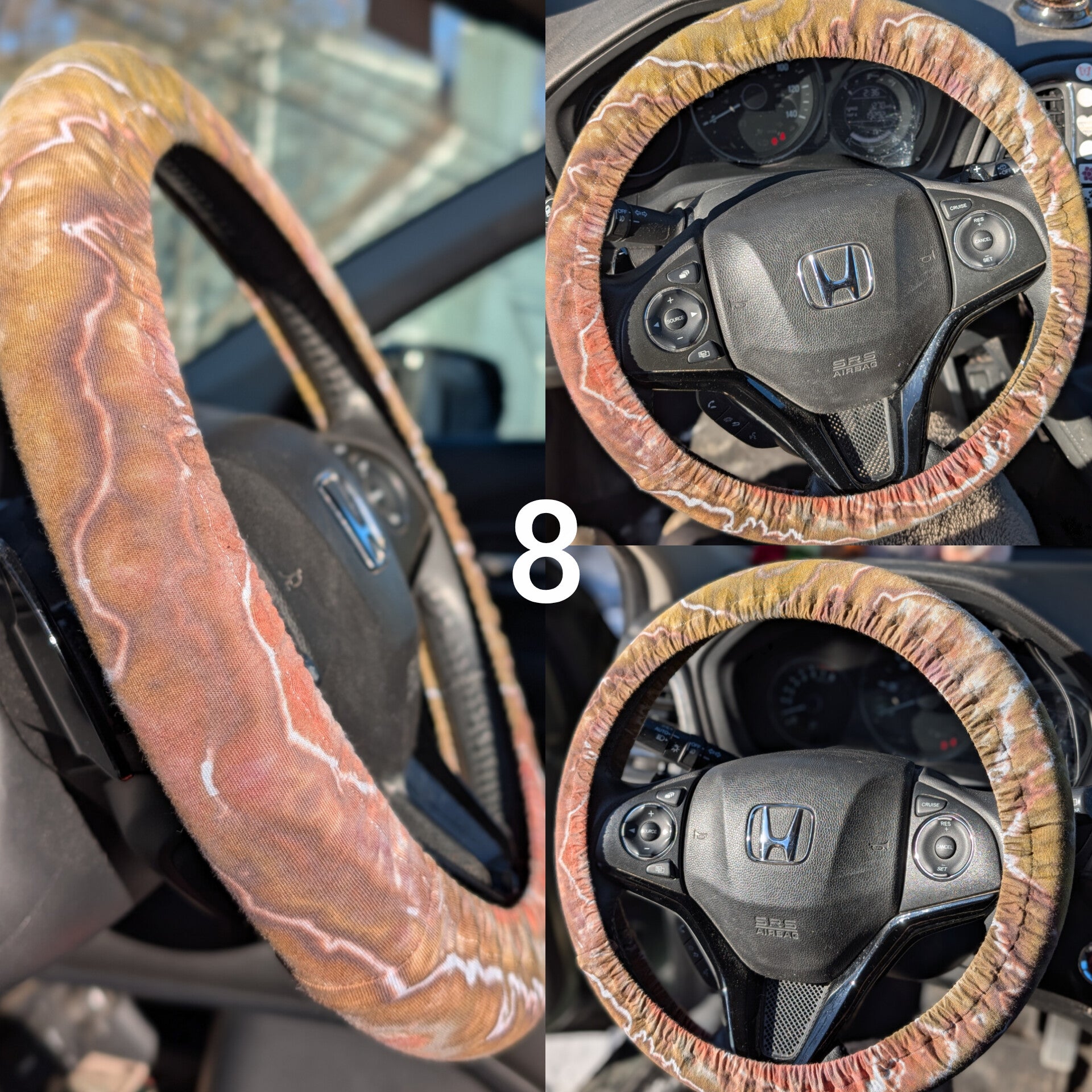Sacred steering wheel covers are here!! They are made of 100% cotton jersey and fit snug around the wheel. These were hand sewn by a small artist & dyed by me! It's the pop of color you didn't know you needed!!