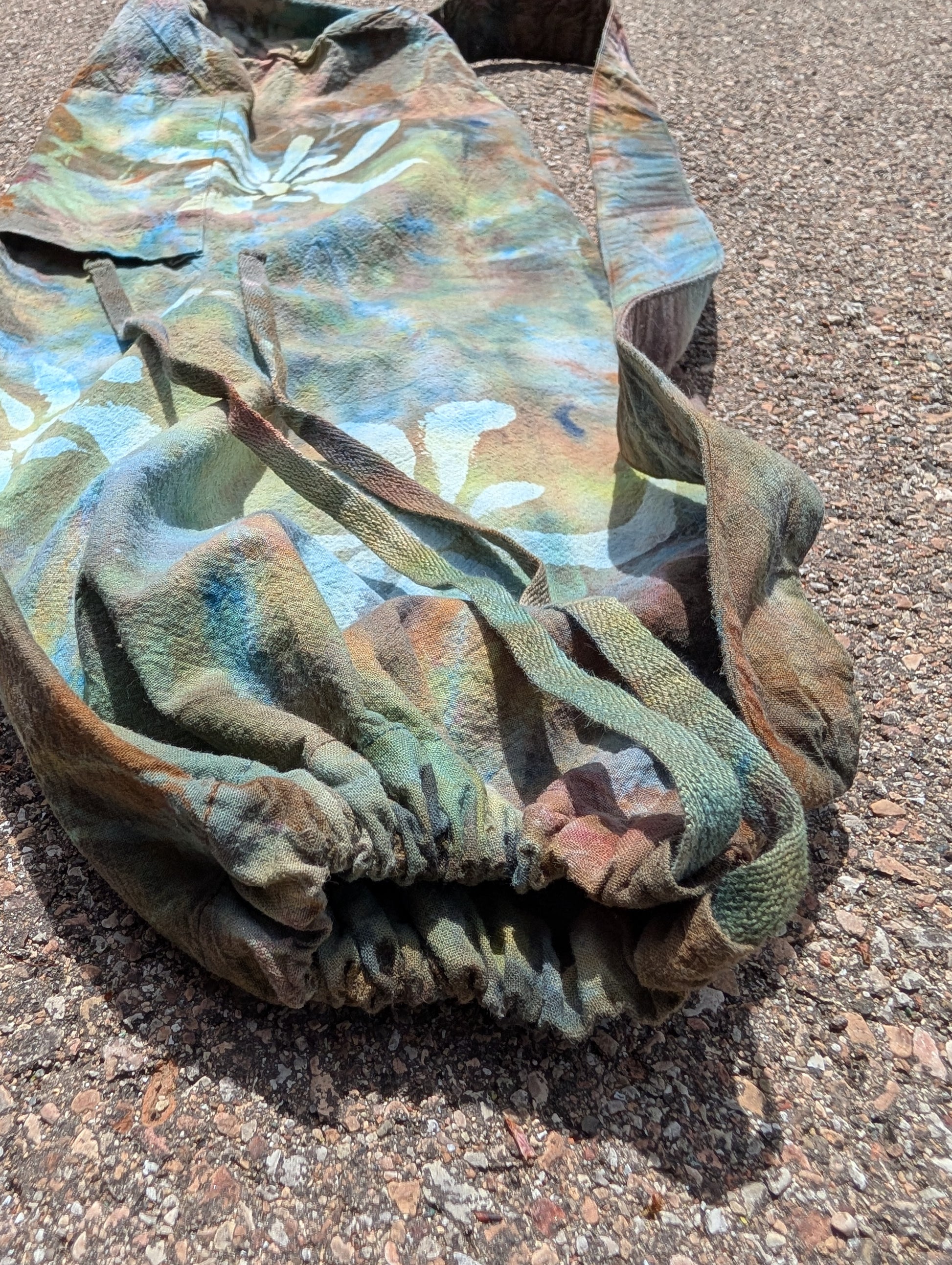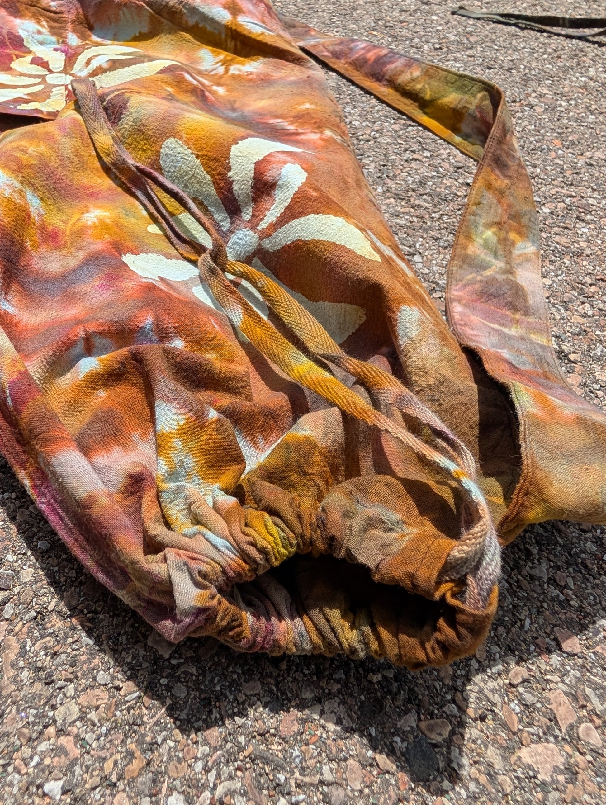 Hand dyed & painted yoga mat bags! With a drawstring closure and front pocket. First I dyed them, then painted on the flowers! This is a perfect bag to carry your yoga mat or flow toys! I've used mine for nearly 4 years and it's my favorite!